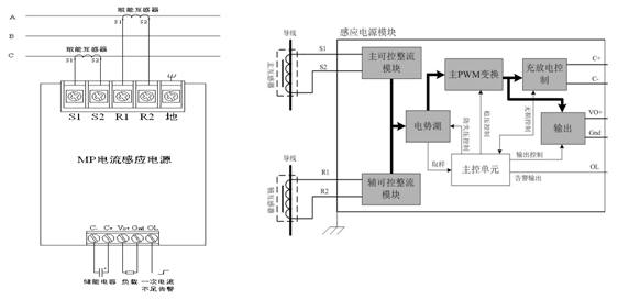 MP超級電容系列感應(yīng)電源模塊是我公司專為中小負(fù)載功率應(yīng)用(平均功率小于5W)而開發(fā)的電流感應(yīng)電源模塊,它體積小,轉(zhuǎn)換效率高,帶超級電容智能充放電管理功能,適合于低一次電流啟動、小功率負(fù)載應(yīng)用場景。其獨(dú)創(chuàng)的電勢湖控制技術(shù)和防失壓技術(shù),能最大限度的發(fā)揮取能互感器的取電潛能;具備大電流保護(hù)設(shè)計(jì),能抵御超強(qiáng)短時(shí)耐受電流沖擊,確保產(chǎn)品在嚴(yán)酷條件下的安全可靠工作;采用自動變頻隔離DC/DC變換,自身損耗極低,輸出電壓穩(wěn)定性好,精度高;具備一次電流不足遠(yuǎn)程告警功能,儲能電容充電采用無損限流電路,較常規(guī)電阻限流充電效率更高、速度更快且實(shí)現(xiàn)了儲能電容的自動管理;產(chǎn)品持續(xù)平均負(fù)載供電能力為5W,短時(shí)(小于2小時(shí))最大功率極限為10W,適用于環(huán)網(wǎng)柜、架空線、電纜隧道等多種小功率負(fù)載應(yīng)用場合。