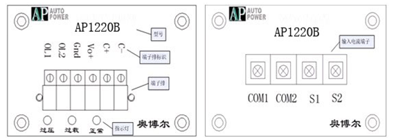 OL1、OL2:過載(導(dǎo)線電流不足)告警輸出端,為一組和內(nèi)部電路隔離的固態(tài)繼電器輸出接點(diǎn),導(dǎo)線電流不足(或電池低電壓充電)時(shí),該組節(jié)點(diǎn)會(huì)閉合發(fā)出告警信號。輸出節(jié)點(diǎn)的電流不能超過50mA,外加電壓需小于200V,請注意合理選擇控制電壓和限流電阻(模塊內(nèi)已經(jīng)內(nèi)置2k歐姆限流電阻)。